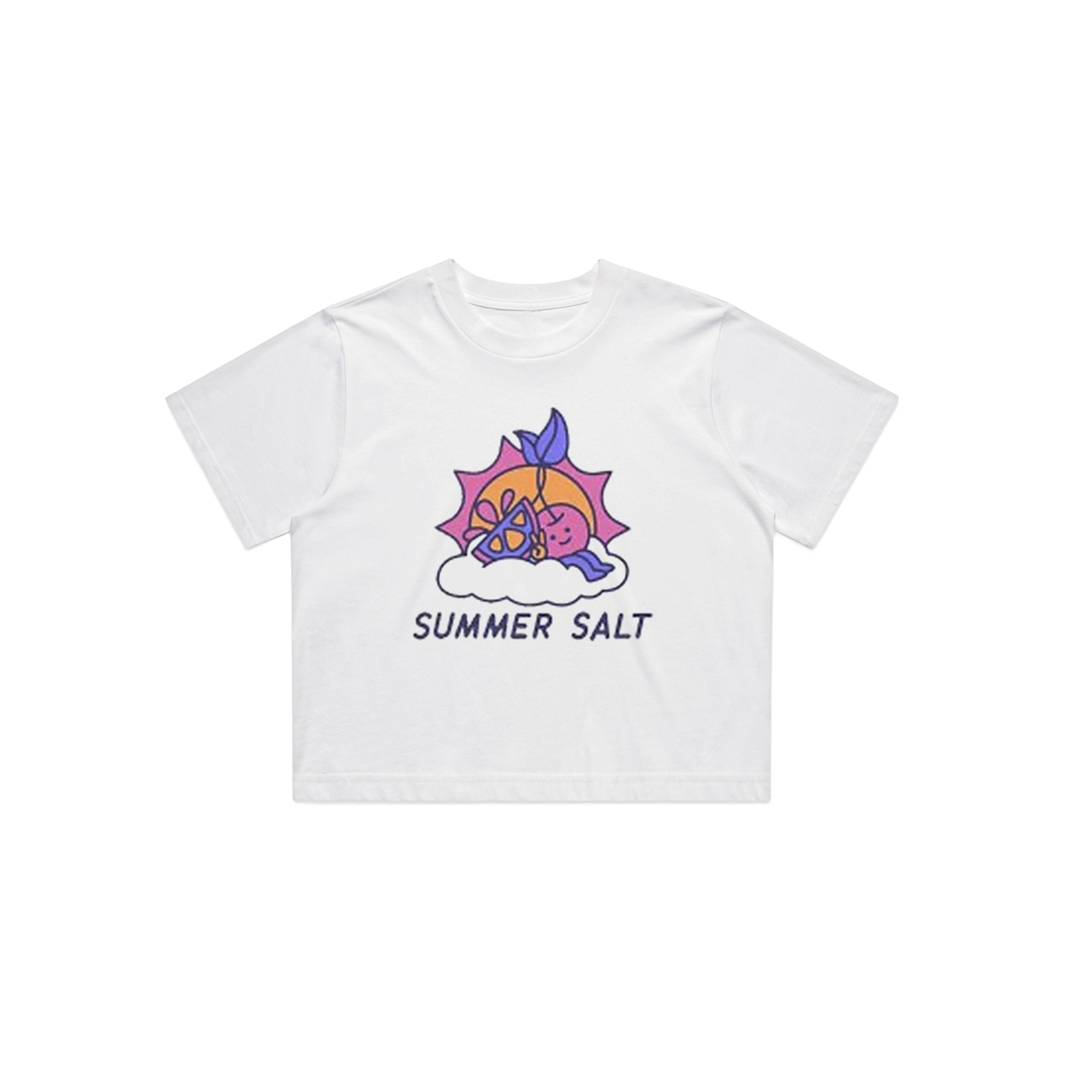 Official Summer Salt Merchandise. Screen-printed on 100% Airlume combed and ringspun cotton cropped jersey tee.
