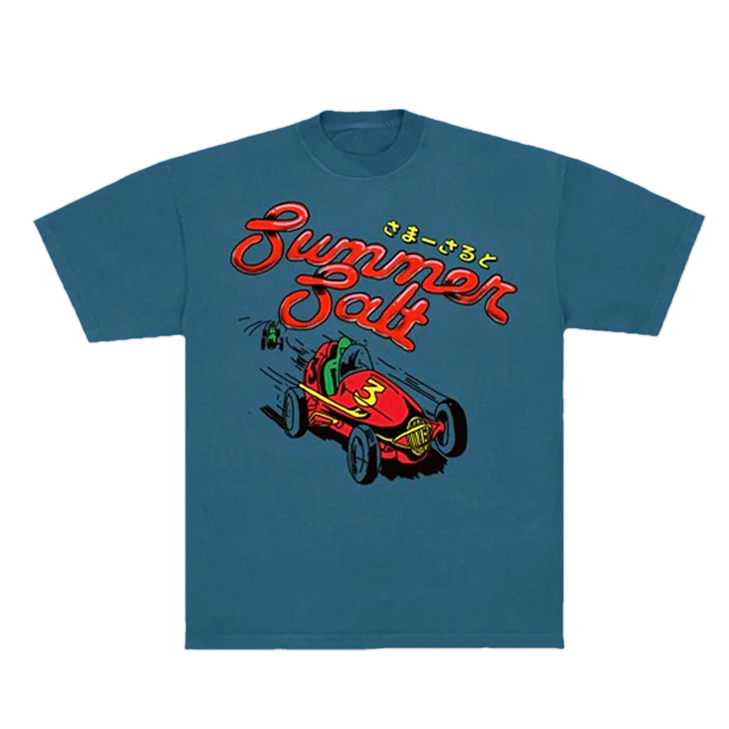 Official Summer Salt Merchandise. Screen printed on a blue 100% ring-spun cotton t-shirt with a relaxed fit.